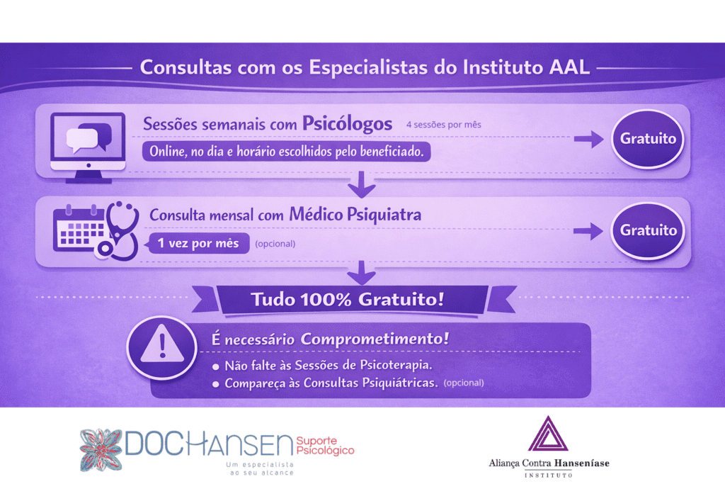 O Instituto Aliança Contra a Hanseníase lançou, em março de 2025, uma nova ação: DOCHansen Suporte Psicológico. Esta iniciativa pioneira oferece atendimento psicológico online gratuito a pessoas acometidas pela hanseníase e seus familiares.