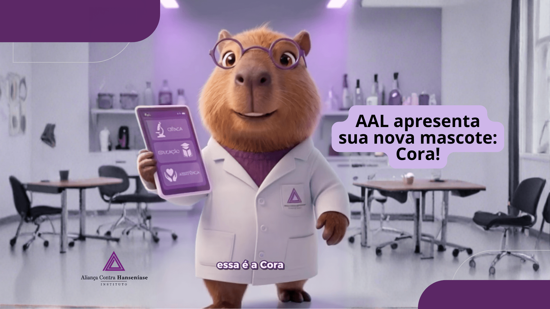 No dia 23 de março de 2026, o Instituto Aliança Contra a Hanseníase (AAL) apresentou oficialmente a sua mascote: Cora, uma capivara cientista, educadora e, acima de tudo, uma aliada no enfrentamento da hanseníase.